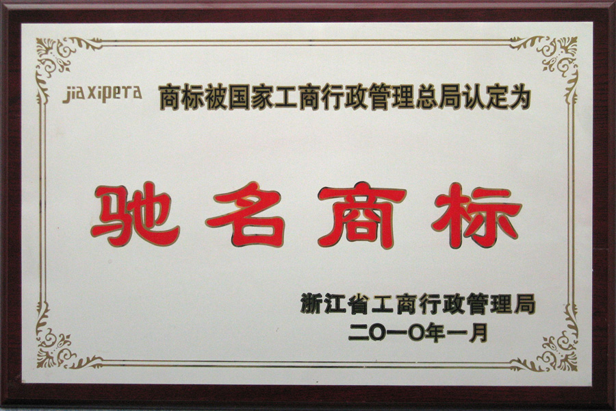 Jiaxipera has won the United Nations "Demonstration Project Award", the Asia Quality Excellence Award, the National May Day Labor Award, the National Quality Award, the Nomination Award of the China Quality Award, the National Model Enterprise with Harmonious Labor Relations, the National Advanced Enterprise for Employment, the National advanced organization for Open Democratic Management, the National Demonstration Enterprise for Safety Construction, the winner of the National " Health Cup" Competition, the China Quality and Integrity Enterprise, the Zhejiang Province Advanced Grassroots Party Organization, Zhejiang Provincial Government Quality Award, Zhejiang Province Top Ten Model Organizations for Enterprise Culture Construction, Zhejiang Province Social Responsibility Benchmark Enterprise, Zhejiang Province Industrial Leading Enterprise, Zhejiang Province Fine Management Demonstration Enterprise, and Zhejiang Province Quality Management System Certification Demonstration Enterprise.
